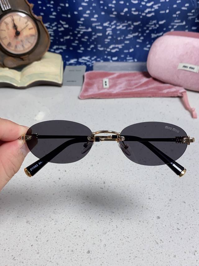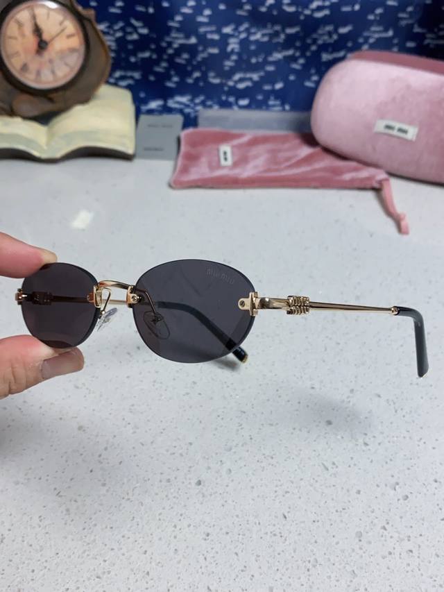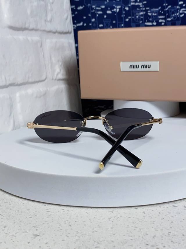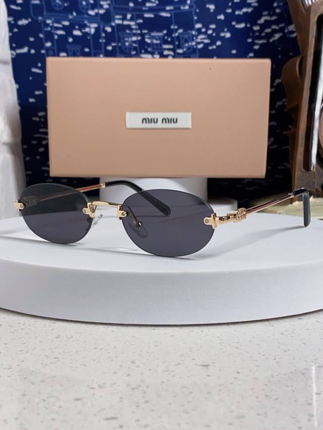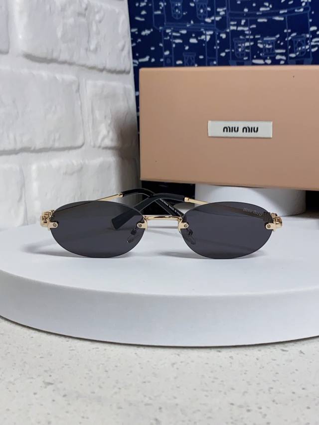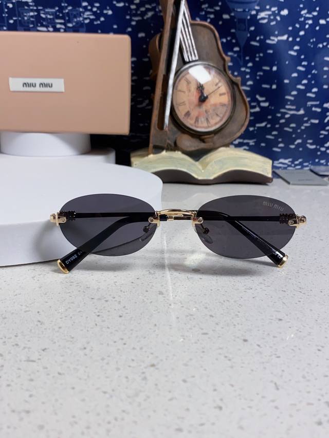 / Miumiu缪缪 2025夏季新款张元英同款眼镜女士无框金属金丝边椭圆形小框御姐风韩式太阳眼镜