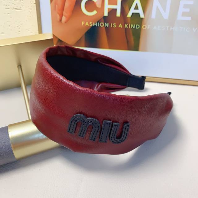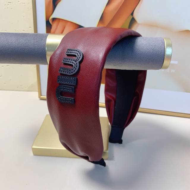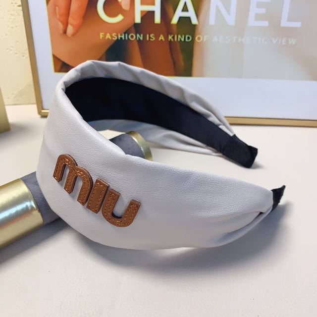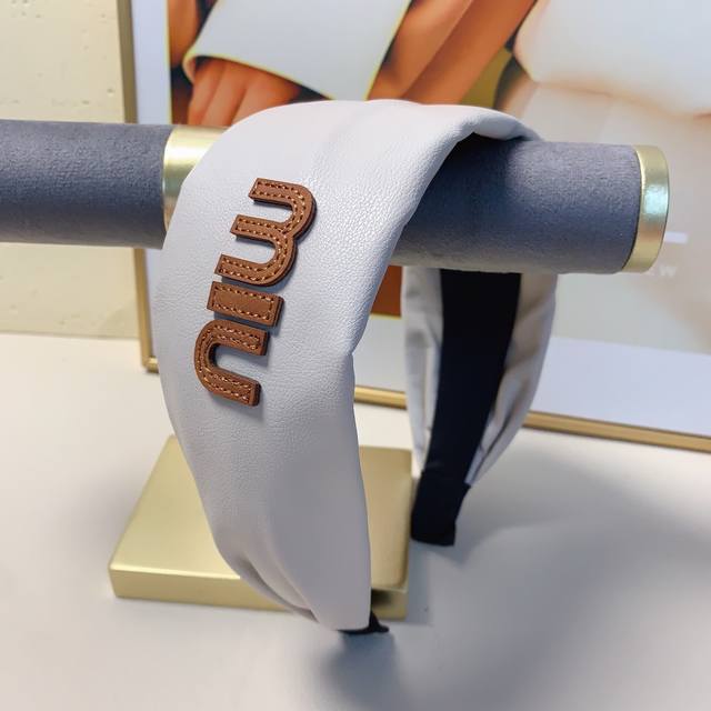 / Miumiu缪缪 Miumiu发箍 羊皮宽版车线Logo轻奢风发箍气质百搭小仙女必入单品名媛风十足~宝藏款 闭眼入推荐款 单个
