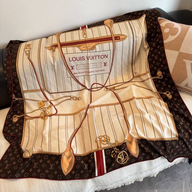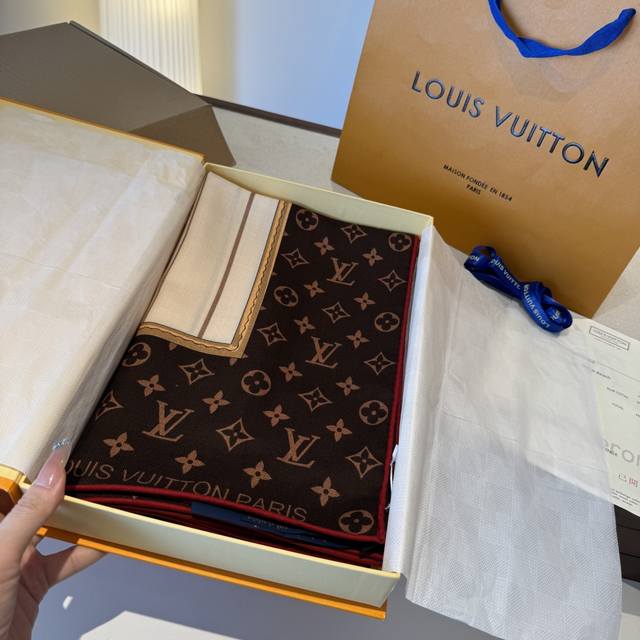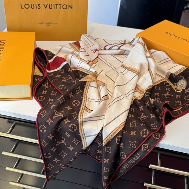 Monogram Infinity 方巾依托印花工艺将 Monogram 图案巧妙铺陈于莹润桑蚕丝,再以 Damier 饰边与织纹标识彰示品牌风范,瞬间俘获视觉焦点。 DDD 尺寸:135×135Cm DDD 成份:30真丝70羊绒 DDD