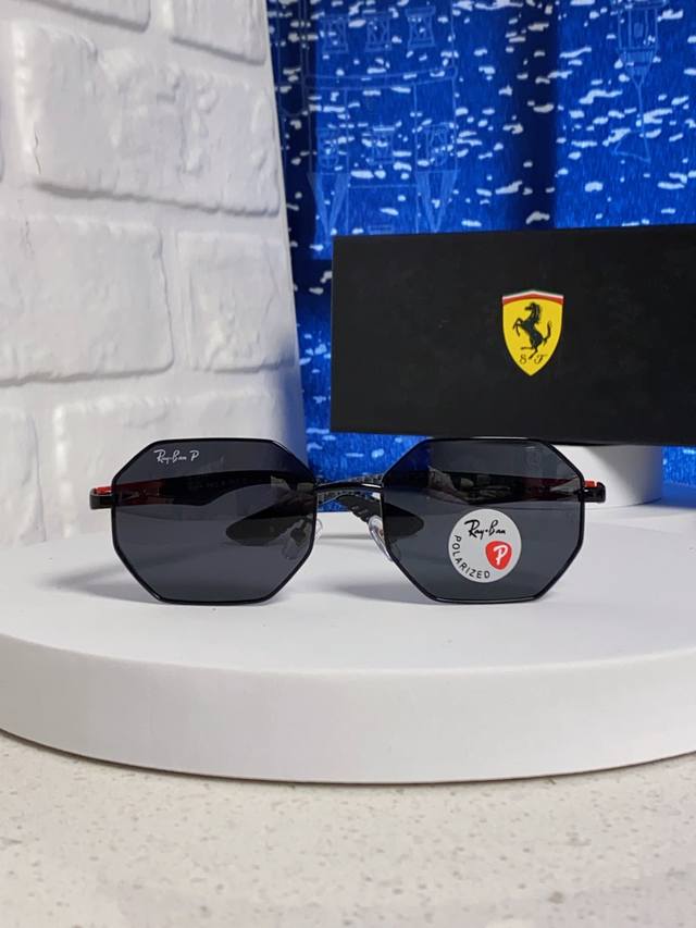 / Rayban雷朋法拉利联名款 2025新款偏光欧美复古单梁太阳眼镜男女潮人朋克风多边形方形司机骑行开车墨镜 Rb3140
