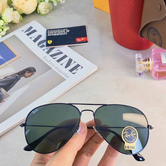 / Rb新款太阳镜驾驶飞行员男女玻璃镜片墨镜钓鱼开车3026蛤蟆镜