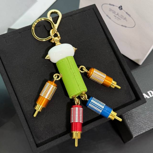 普拉达prada机器人钥匙扣挂饰包挂 -这款手袋饰件以金属和品牌标志性的Saffiano皮革制成,独特设计增添别样趣味。配有挂钩与圆环,并饰以涂珐琅三角形金属徽