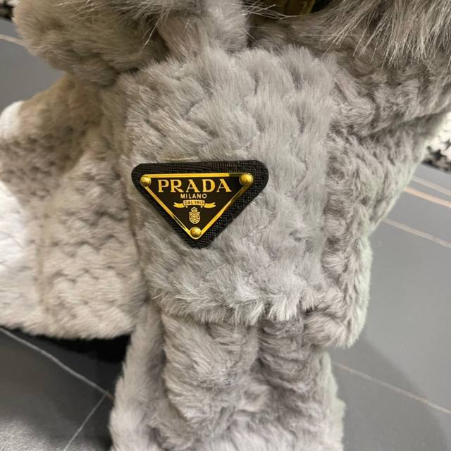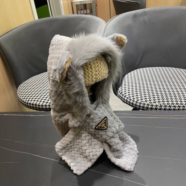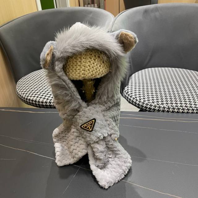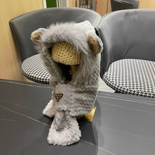 / 普拉达 冬新款女冬季百搭保暖毛绒连帽围脖围巾套潮