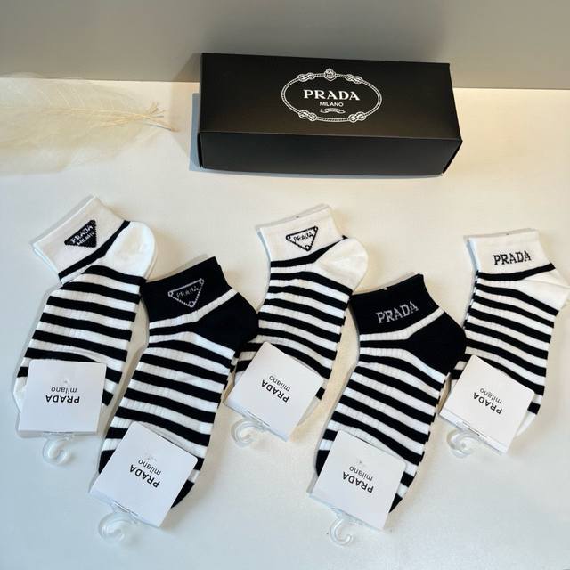 / 普拉达 新款早秋中款袜,款式经典,时尚高级!大牌出街,潮人必备,颜色百搭 一盒5双