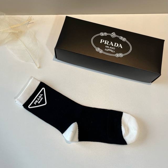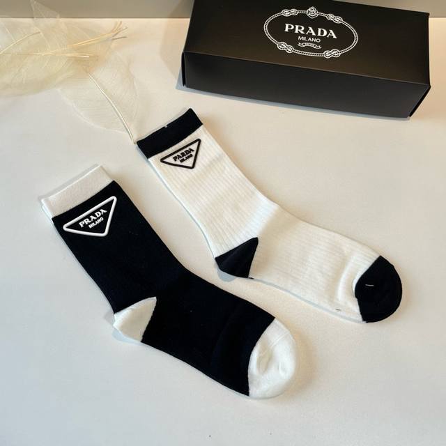 / 普拉达 新款早秋长筒小腿袜,款式经典,时尚高级!大牌出街,潮人必备,颜色百搭 一盒两双