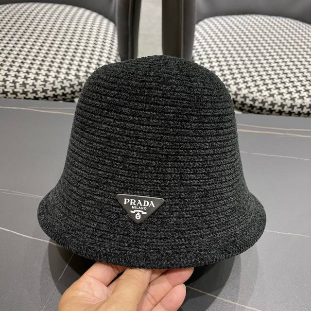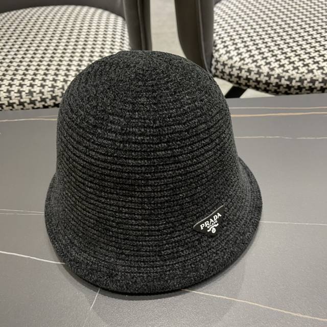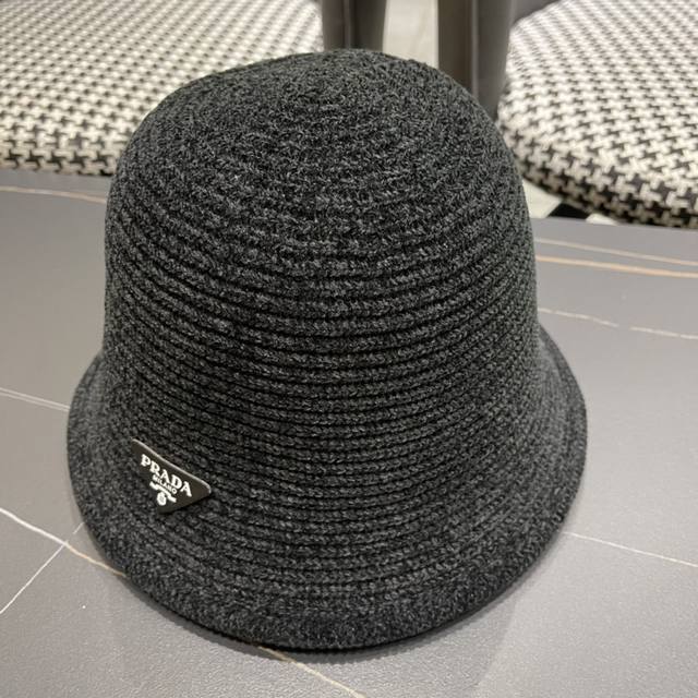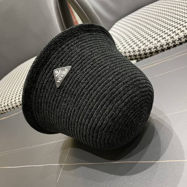 / 普拉达Prada 毛线渔夫帽女时髦百搭优雅水桶帽显脸小遮阳防晒盆帽