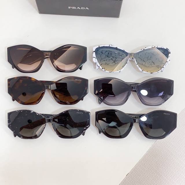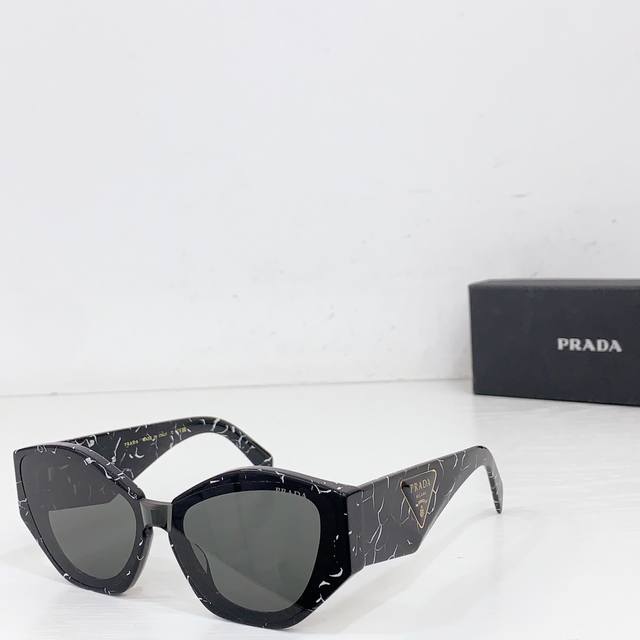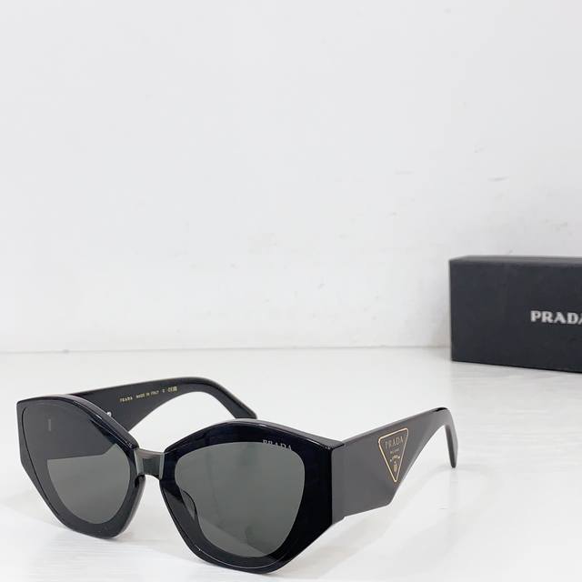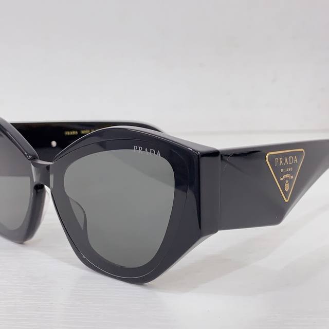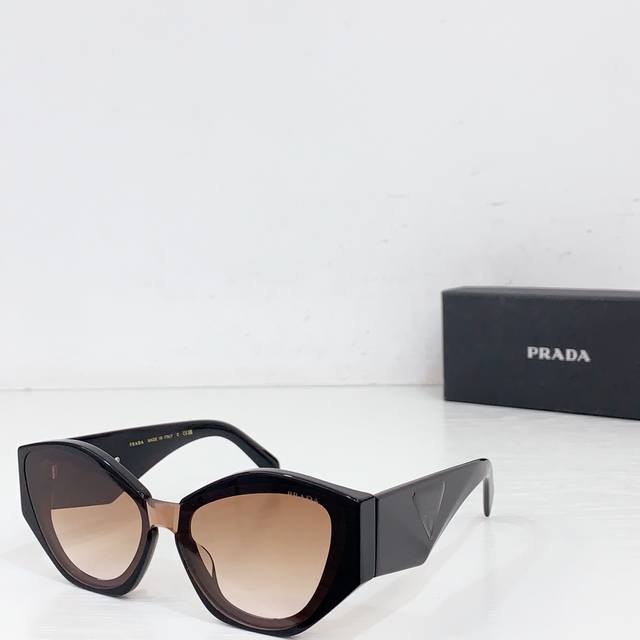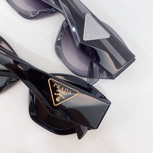 Prad*复古倒三角标墨镜女级感2025新款时髦个性显瘦方框黑色太阳眼镜