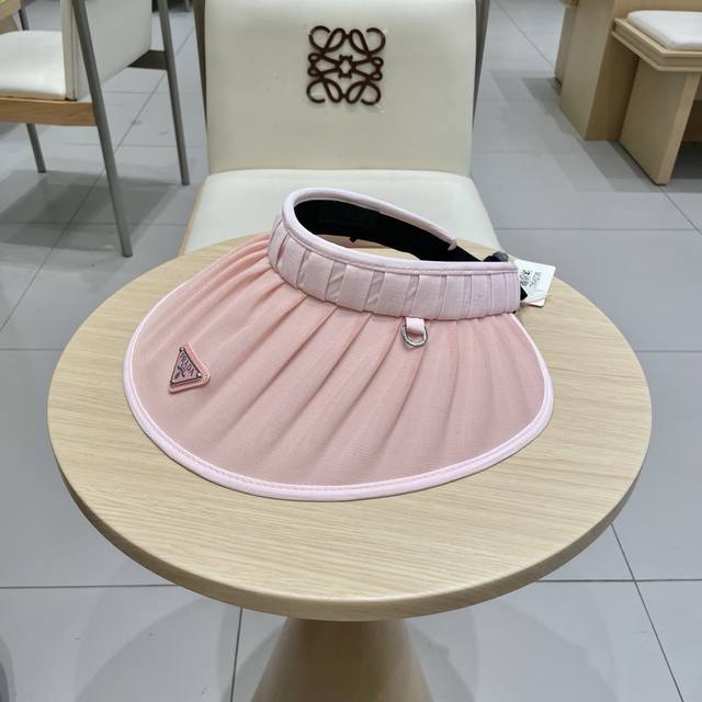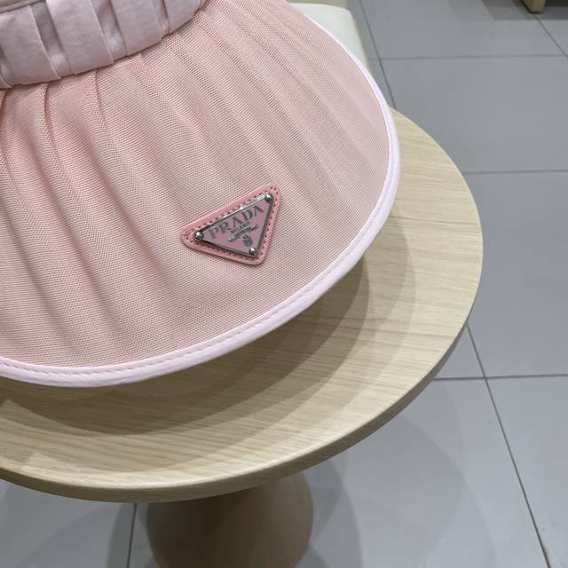 / Prada普拉达夏季新款大檐空顶帽女户外出游褶皱百搭防紫外线遮阳帽防晒太阳