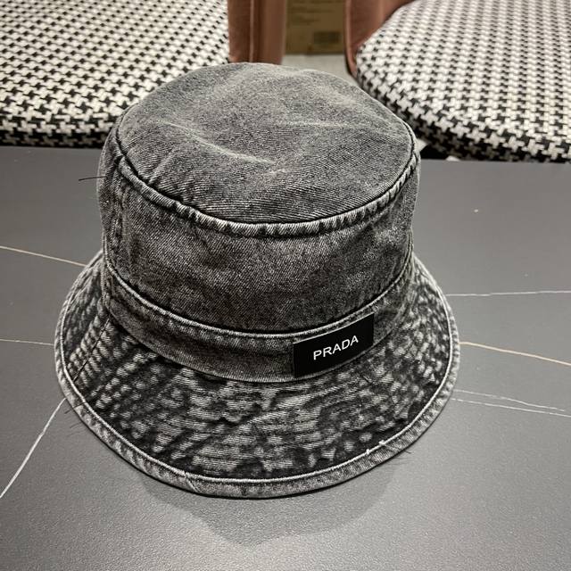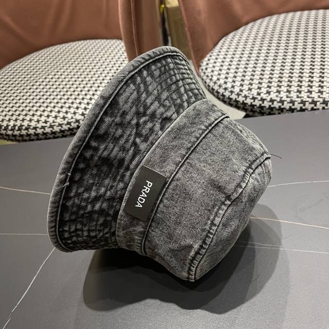 Prada普拉达 做旧水洗牛仔渔夫帽设计街头小众盆帽潮