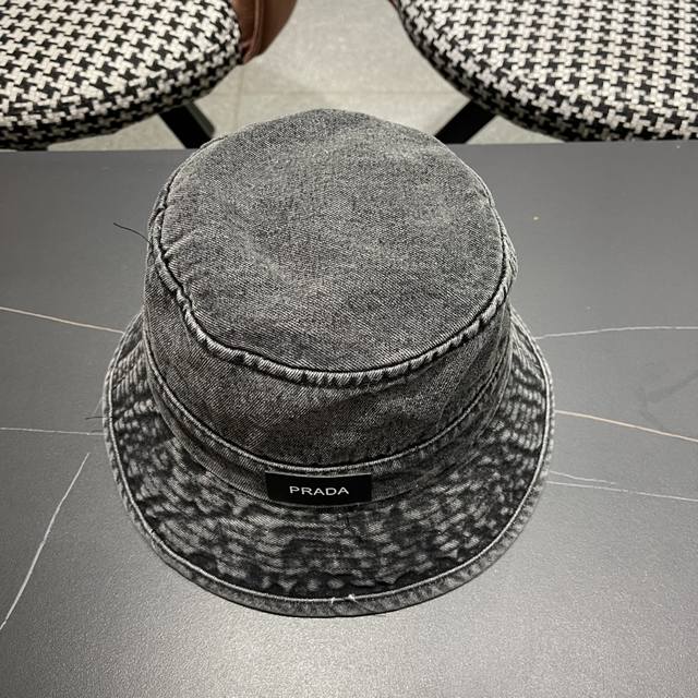 普拉达新款牛仔渔夫帽,头围57Cm