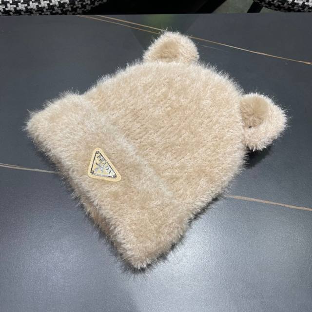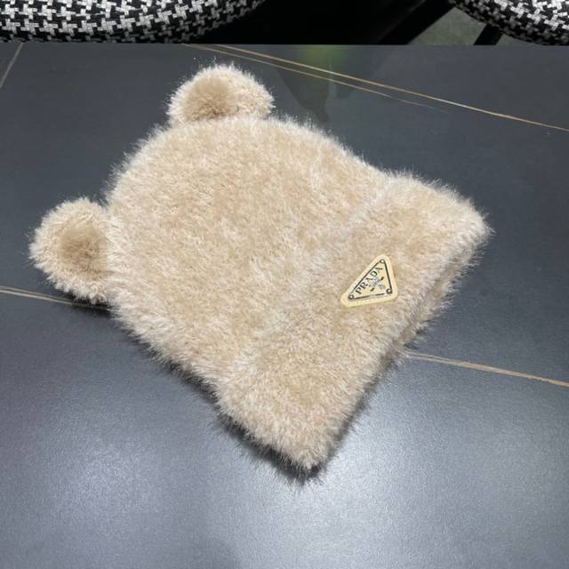 prada普拉达 秋冬新款可爱小熊耳朵针织毛线帽,大牌系列,轻奢感满满.冬天出街必备