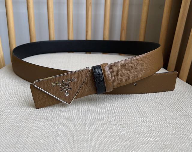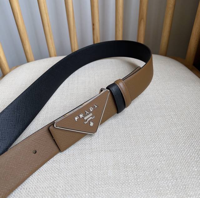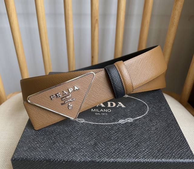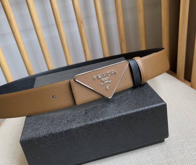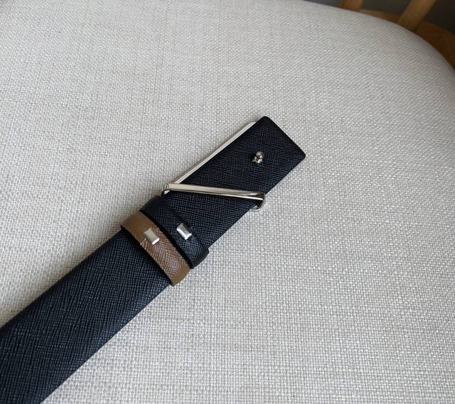 / Prada 普拉达 专柜最新款 这款搭扣式腰带出自多功能的组合式配饰系列 可随心搭配 三角形徽标藉由普世的简约廓形彰显别具一格的特色和现代感 呈现精致质感 宽: