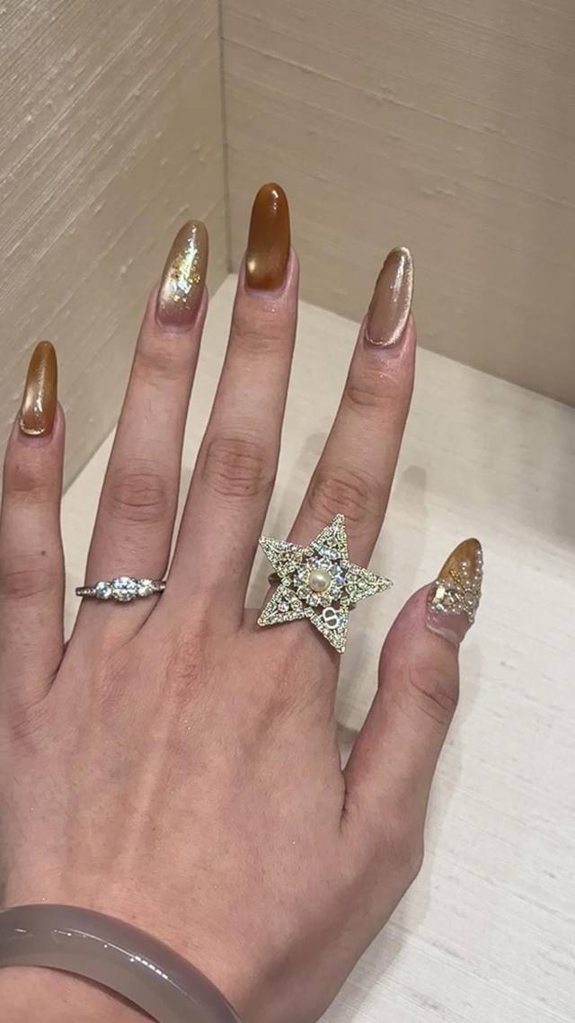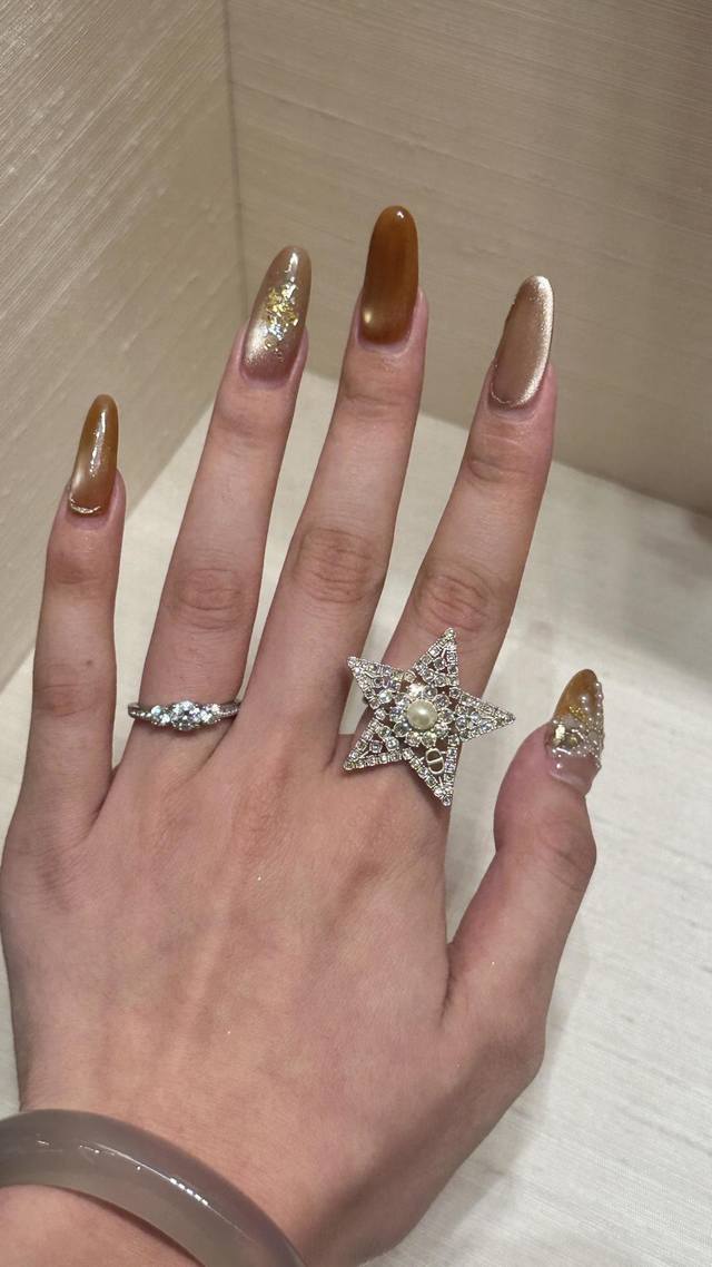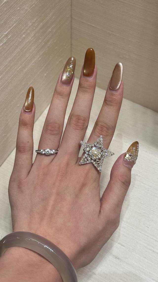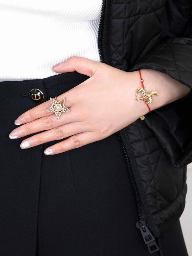 Dor 五角星珍珠Cd戒指 一定要买系列2630早春最新款绝美系列!全网首发现货第一眼看上去它是个爆款低调的浅金色五角星设计,上边颗颗施华洛世奇水晶非常精致高级上耳很修饰脸型超美!财阀千金本命款十分推荐宝们自留码数分别S,M,L