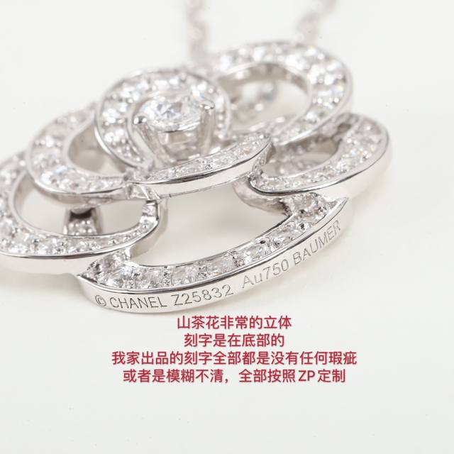 我们出品 Zp75790购入 18K白金+真钻石材质 ,可定制18K真金真钻 我们925银镀白金+施华洛世奇锆石。 超级温柔的闪闪山茶花,夏季百搭单品。最难的就是这个版型,立体层次的花朵,8个花瓣 前后调整了10次,才达到现在效果。上面的锆石也是大小渐变分布。背面处理非常细腻哦。特别定制的龙虾扣和链条,非常经典,耐看的一条项链