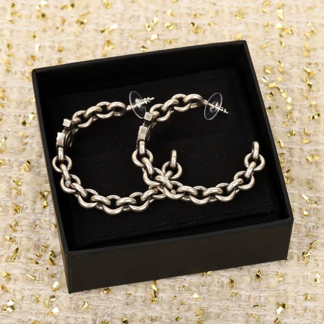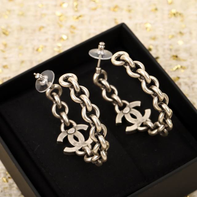 Ch Nel 大号双C耳环 24A高级手工坊系列,整个系列都要入,火到炸裂,美到窒息,不买真心对不起自己非常有高级感的一款耳钉,上边用了施华洛世奇水晶,珠钻相拼层次感十足,以及贵金属黑辽电镀 不是很黑的枪黑色 而是微微的贵金属黑辽灰灰的质感的,一定要入这款,上耳优雅女神气质