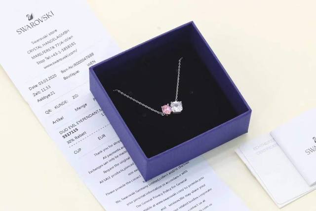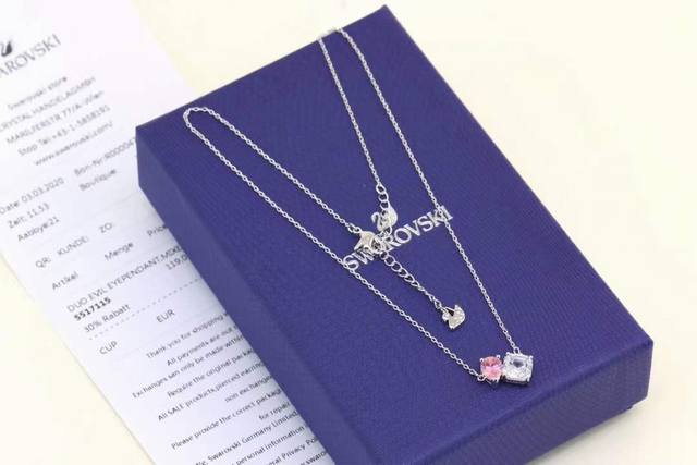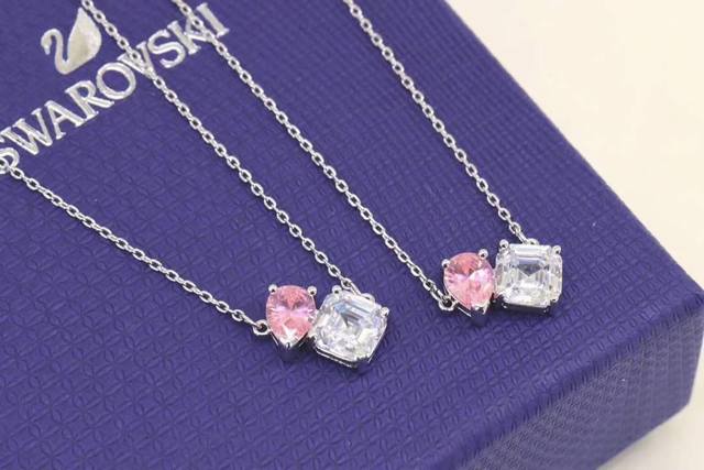 / Swarovski 挚爱永远 冰糖粉钻锁骨项链 这款优雅简约的设计彰显精雕细琢的Swarovski仿水晶,则缀有闪亮悦目的玫红色及白色Swarovski仿水晶。
