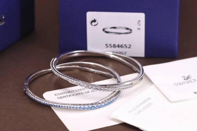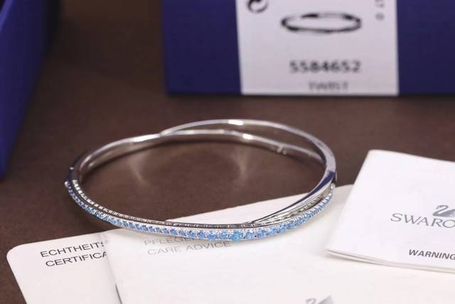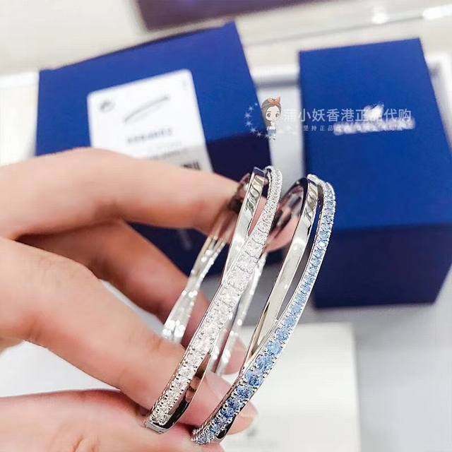 / Swarovski 螺旋交错水晶扭纹手镯 双色 这款精致考究的手镯是以现代手法诠释时下流行的螺旋元素,展现含蓄优雅的魅力。手镯上缀有闪亮耀眼的浅蓝色Swarov