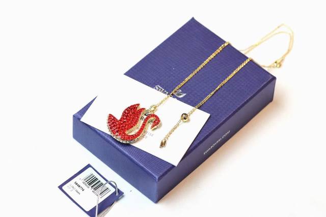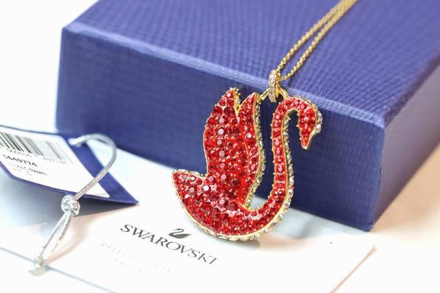 / Swarovski Iconic Swan 双面满钻 红天鹅抽拉式项链 这款中国新年坠链以吉利的红色仿水晶密镶设计搭配镀金色饰链,为您的风格增添一抹耀动的丰茂,