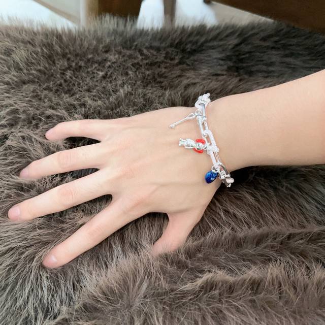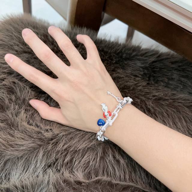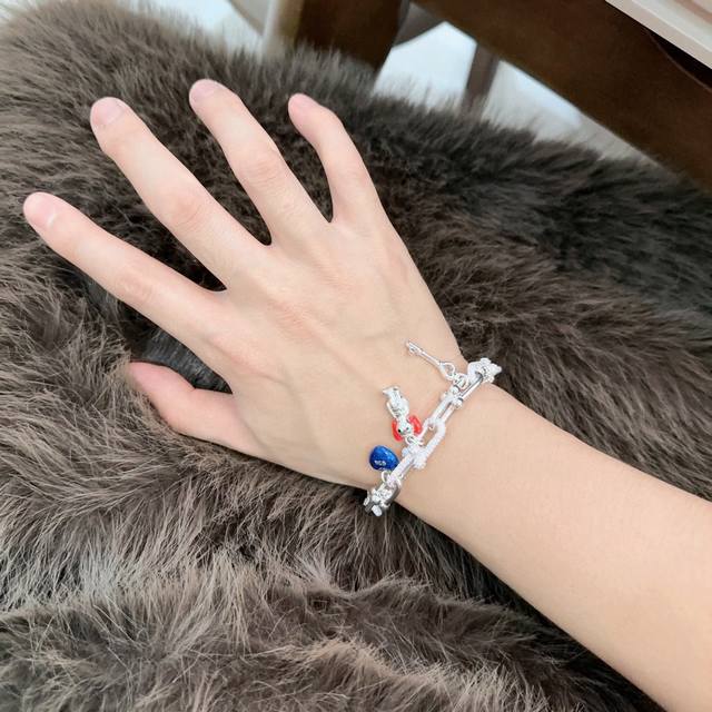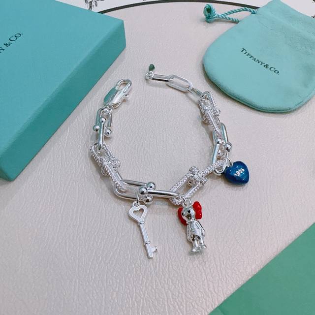FFF 新款粉钻蒂芙尼手链Tiffny&Co. 专柜精工银版本 明星同款 复古做旧风 原版复刻 纯手工打造 ~正品开模潮流时尚必备 男女均可佩戴 情侣款同款 摇滚朋克银风格 潮流百搭 官网同款 DDD
