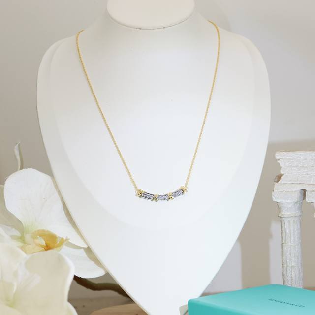 / 精工版本 交叉鲜明的线条,精致呈现 蒂芙尼Tiffany 的简约纯粹。Tiffany项链采用精致的链环设计,饰以此 系列的标志性交叉 ,十分优雅别致。亚金材质带