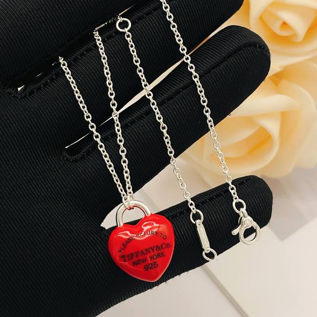 Tiffany*蒂芙尼最新款银色红爱心项链 一致Zp黄铜材质,非常的上镜设计很特别值得入手高级手工坊系列 DDD