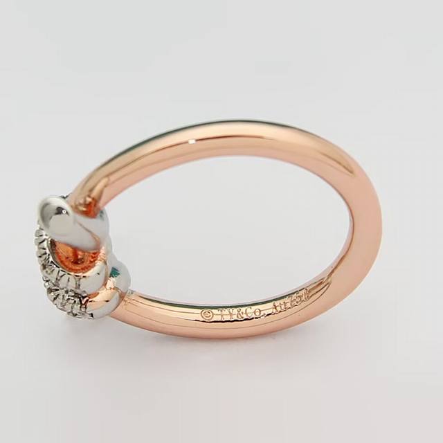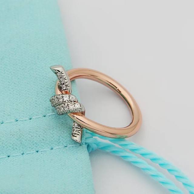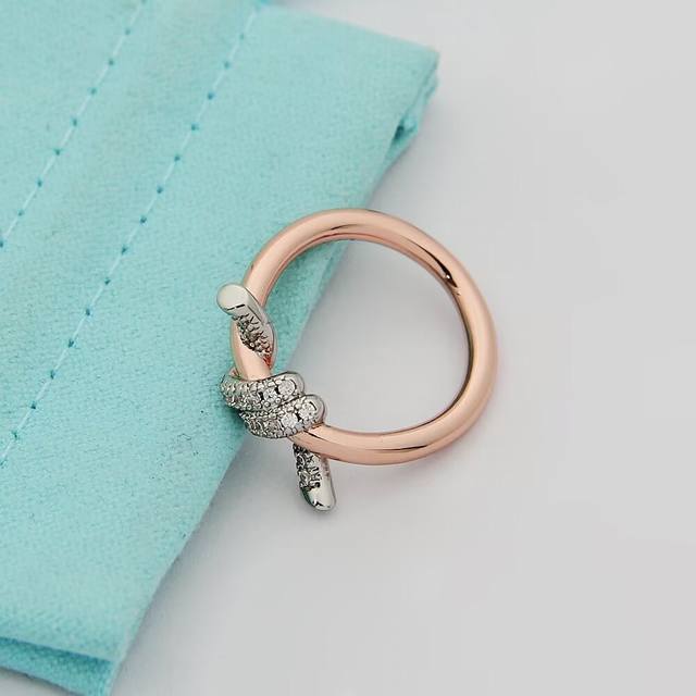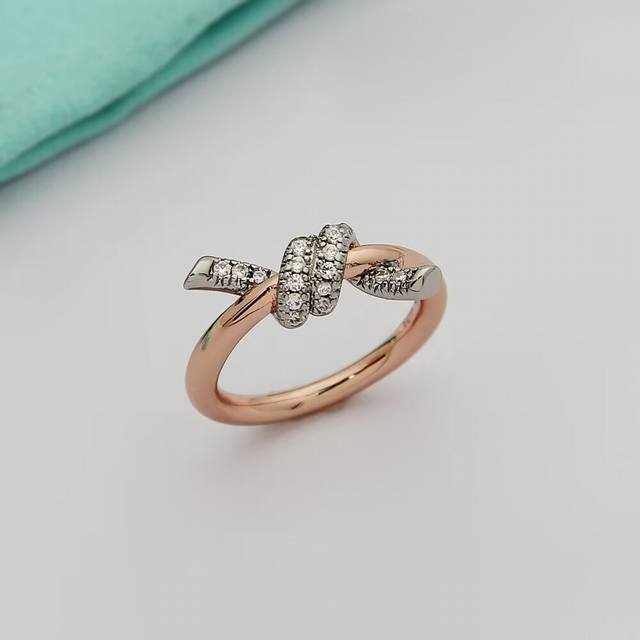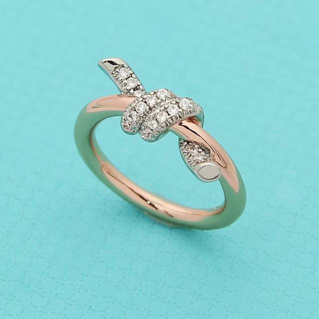 Tiff缘系列 蒂芙尼戒指间色半钻打结戒指 镶嵌高碳钻 以时尚别致缠绕绳结象征两人之前的特有连结 分色电镀 Size6789码