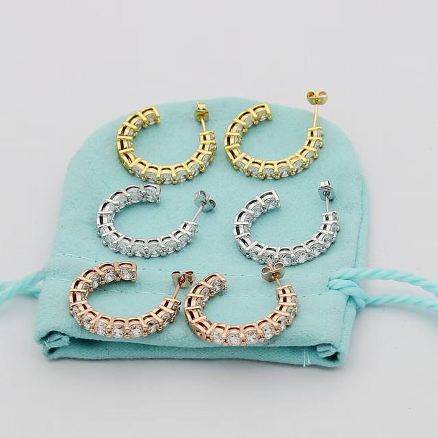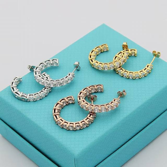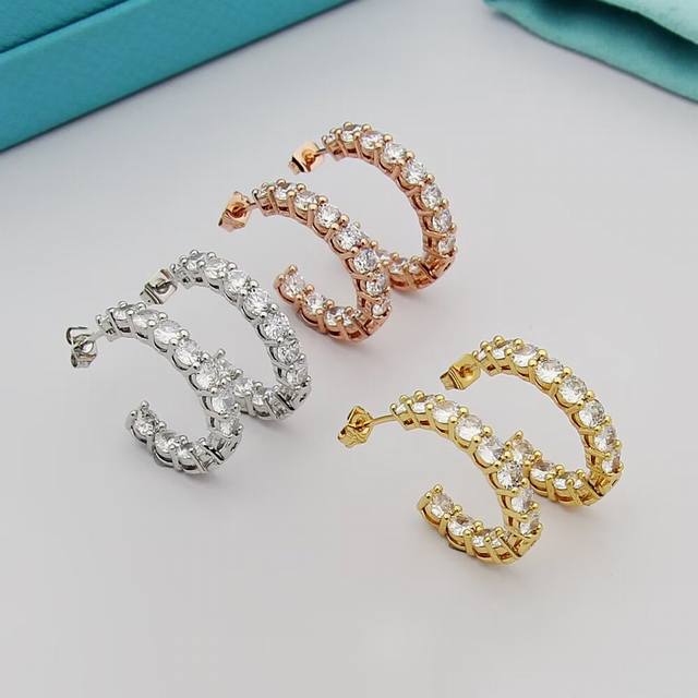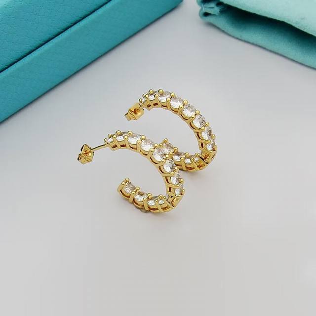 / Tiff蒂芙尼耳钉 排钻耳钉半圈形耳钉 简约大气百搭亚金材质电镀厚金 时尚不过时款 潮流单品