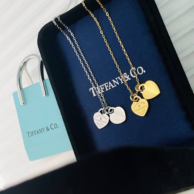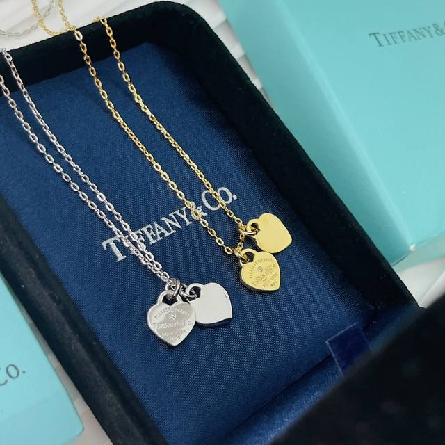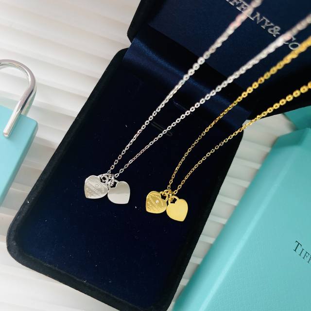 Tiff蒂芙尼项链双心形项链新款 双心牌 单钻 项链 经典百搭 专柜新款 百搭单品 正品同步9亚金打造 实拍精湛工艺 流行的蒂芙尼主题 永远是众人瞩目的焦点 白金黄金两色 不过敏不褪色 项链