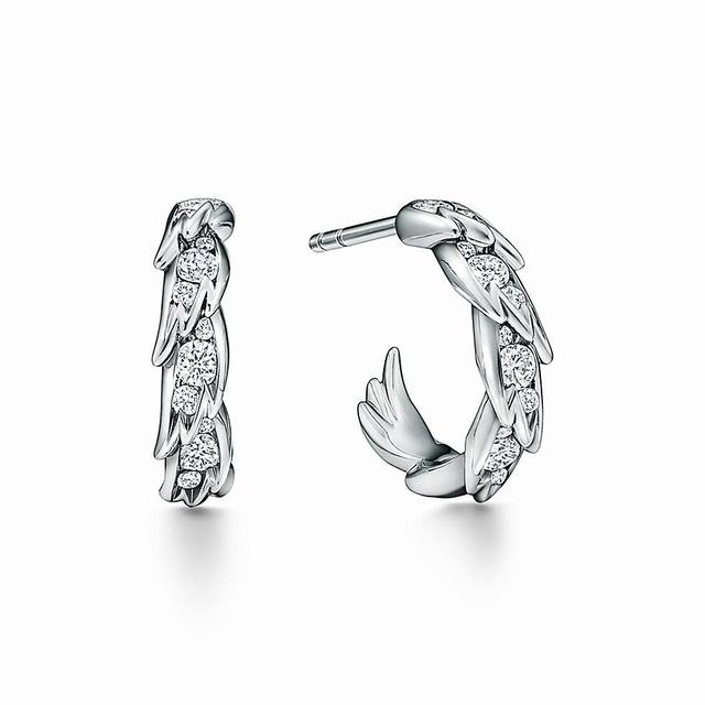 / Tiffany蒂芙尼耳钉石上鸟系列灵动羽翼圈形耳环 飞羽圈形耳环