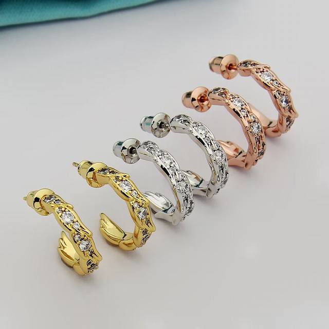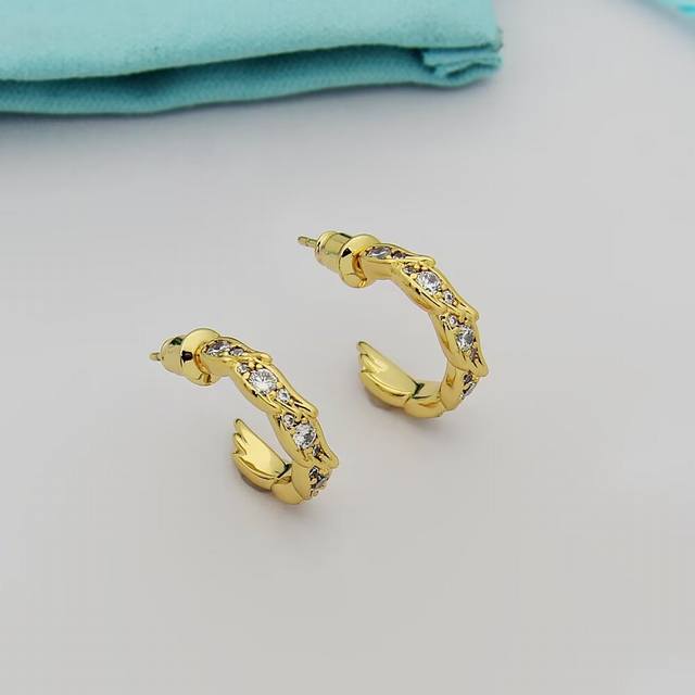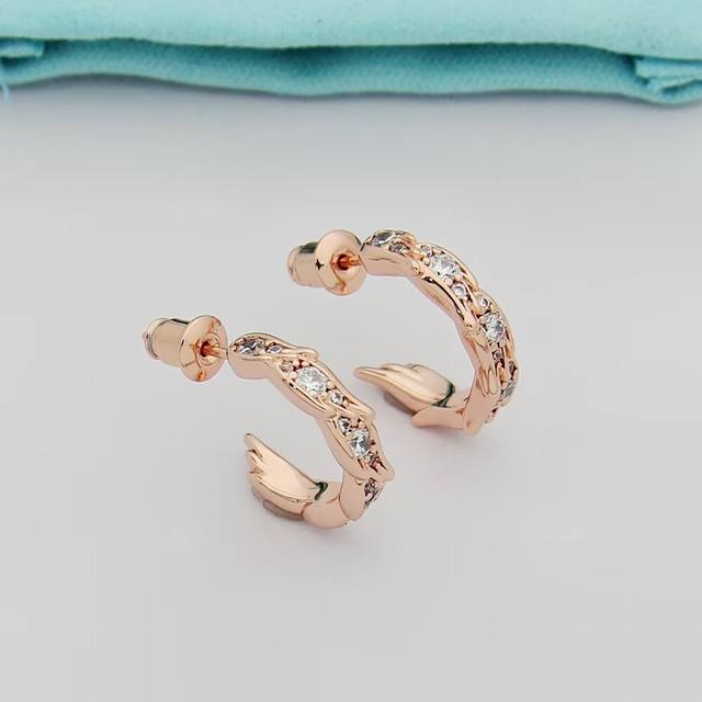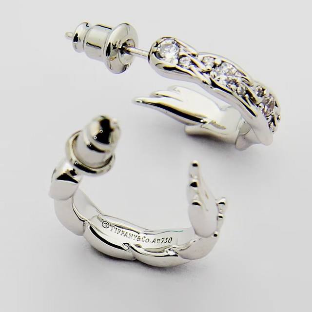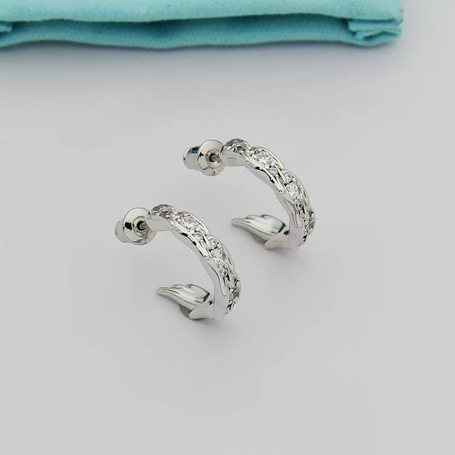 Tiffany蒂芙尼耳钉石上鸟系列灵动羽翼圈形耳环 飞羽圈形耳环