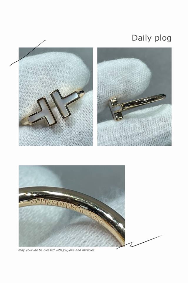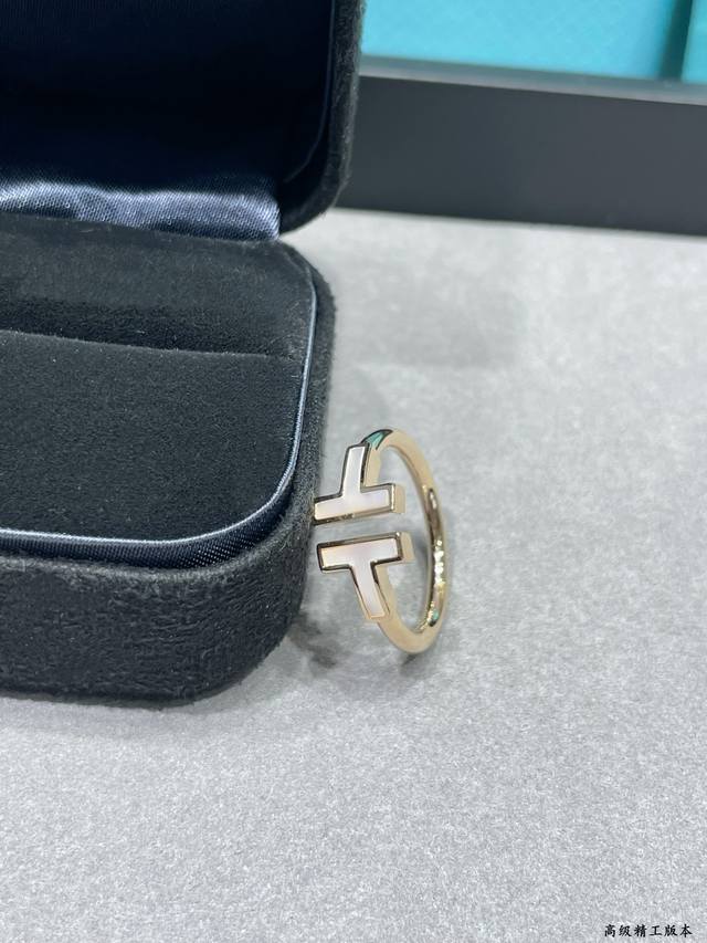 V金镀咪金 蒂芙尼双T贝母戒指码数5678。T Square 玫瑰金戒指By Tiffany镶嵌白色珍珠母贝 Square 戒指和手镯的轮廓更醒目大胆,均可以独立或混搭佩戴。