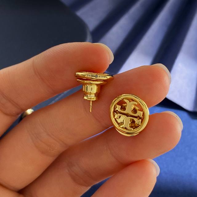 Tory Burch托里伯奇Ins时尚简约几何圆形耳钉 黄铜材料 金色 重约3.8G 尺寸约1.23Cm*1.23Cm*0.23Cm