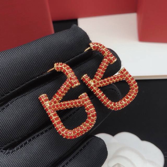 编号Ved0080 华伦天奴耳钉镶钻满钻中号红钻