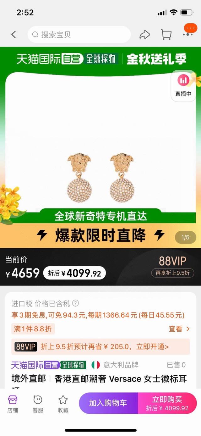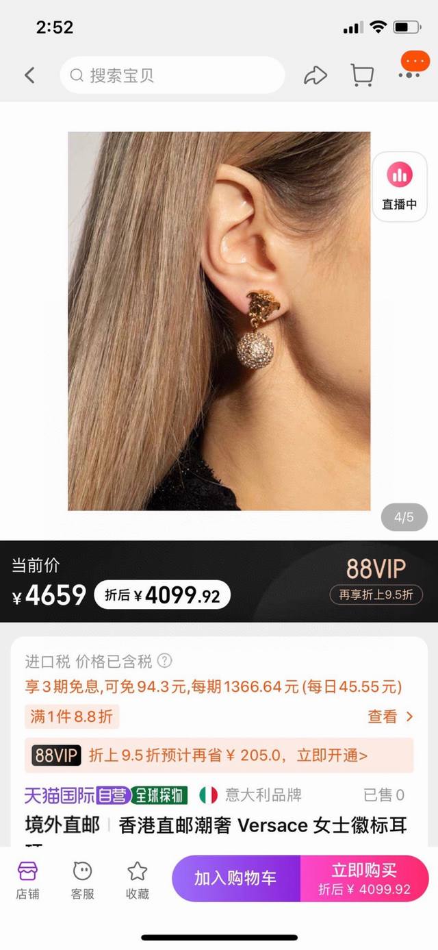 Versace 范思哲 美人头迷宫设计耳线美杜莎金色耳钉 走秀款 精选原版一致