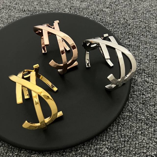 新款Ysl 圣罗兰雕刻镂空设计字母宽版手镯18K精钢保色原装材质 Yves Saint Laurent 创立于1961年...