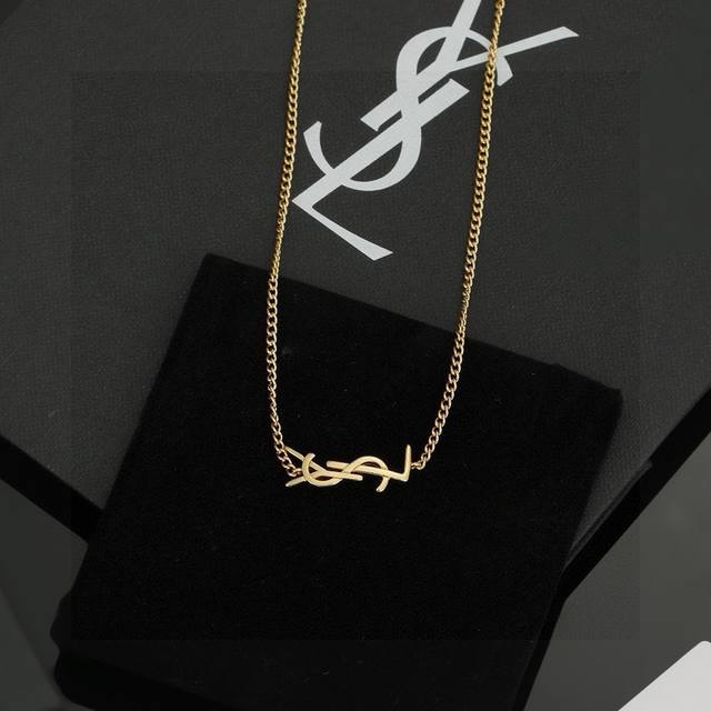 Ysl 圣罗兰 项链原装黄铜材质 Yves Saint Laurent 创立于1961年 优雅抽象大胆别致的设计风格使它成为奢华时尚界著名的品牌之一。引领精致、时尚、新颖的法国时尚风格。项链