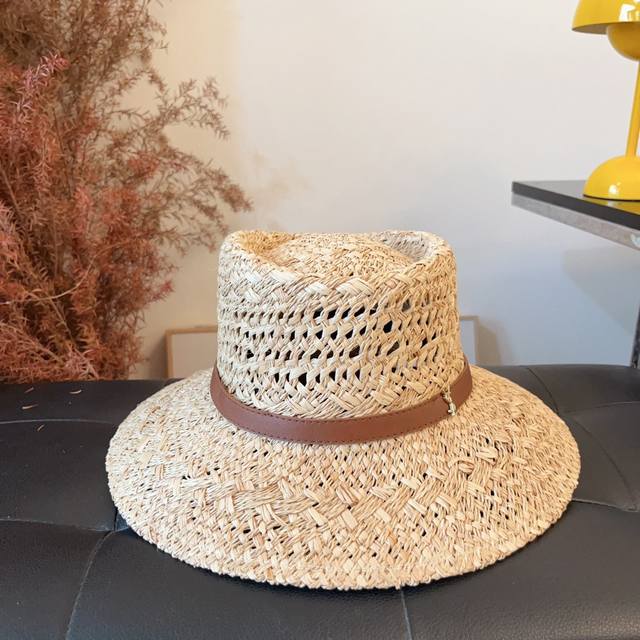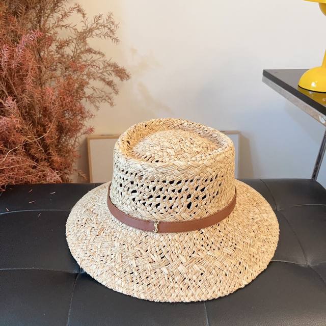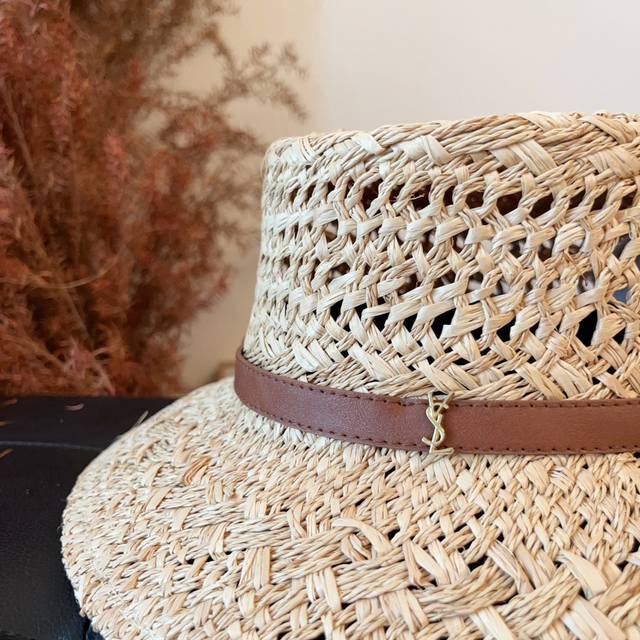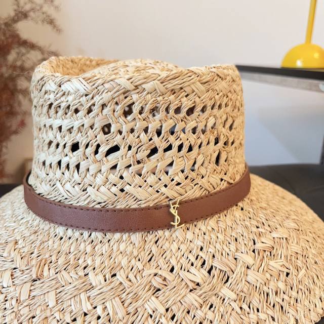 / 跑量 定制款,不退换! Ysl新款皮带扣草帽 拉菲草镂空盆帽,法式百搭草帽