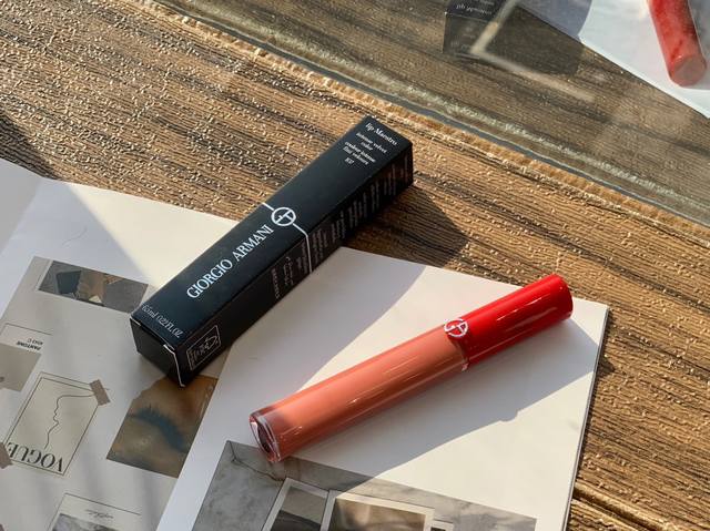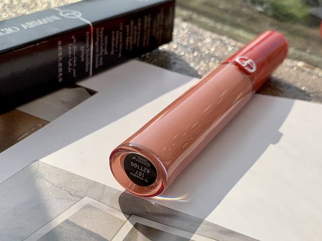 / 明通版 阿玛尼美妆,Armani Beauty全新限定色。#107,桃木甜杏。超级温柔适合春夏,奶油蜜桃色,质 地很顺滑,厚涂高级有质感,薄涂丝绒雾面哑光少女感