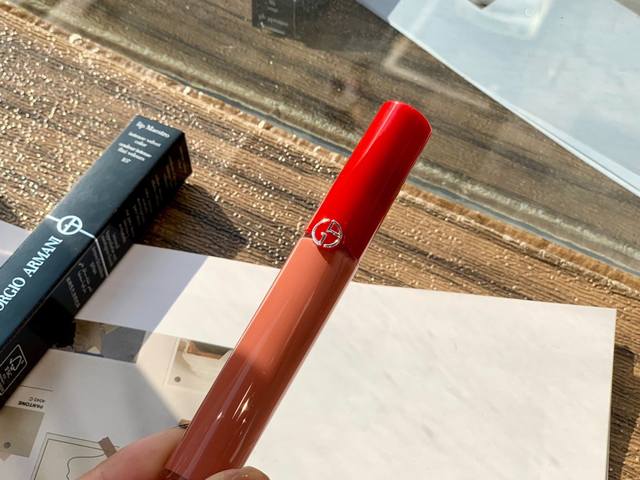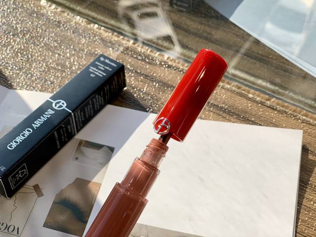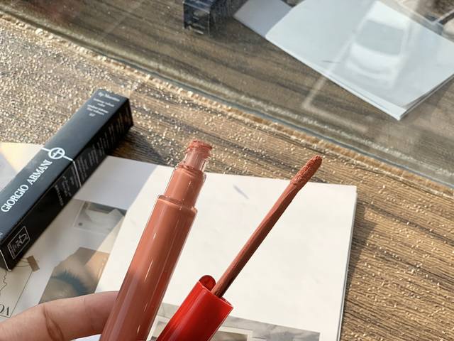 明通版 阿玛尼美妆,Armani Beauty全新限定色。#107,桃木甜杏。超级温柔适合春夏,奶油蜜桃色,质 地很顺滑,厚涂高级有质感,薄涂丝绒雾面哑光少女感,怎么涂都好好看,黄皮也适合。 乔治阿玛尼臻致丝绒哑光唇釉107樱花奶茶 限定新色乔治阿玛尼 春季新色丝绒哑光 红管口红唇釉 6.5Ml 107 Nuda